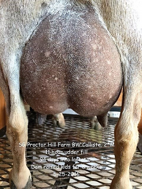 | SG CH Promisedland Pal Macarena 5*M 5*D 2012 LA VEEE 91 Reserve Best Udder at 2010 ADGA National 2x Grand Champion Jr Doe 10x Reserve Champion Jr doe 3xGrand Champion Sr Doe 1xReserve Champion Sr. Doe 3xBest Udder 4xBest of Breed 2010 ADGA National Show 1 of 31 1st /Place Udder under 2 yrs old Reserve Best Udder 2012 ADGA National Show - 1st Place, 1st Udder under 4 Yrs old ADGA 305 Day Test Year--DIM-- Mild--Fat--Prot 2012---267--1171--70---49 |